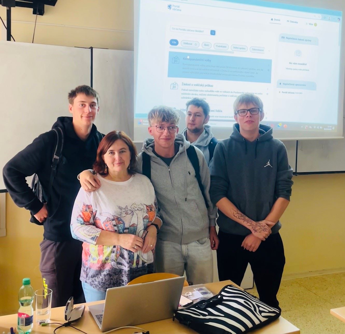 Během přednášky paní Šerhaklová studentům přiblížila, co je Portál občana, jak funguje a jaké výhody přináší. Díky tomuto portálu mohou lidé bezpečně a pohodlně vyřizovat řadu úředních záležitostí online – například založit datovou schránku, požádat o nový řidičský průkaz či voličský průkaz, podepsat ePetici, nebo získat výpis z rejstříků. Nabídka služeb Portálu občana se navíc neustále rozšiřuje.
