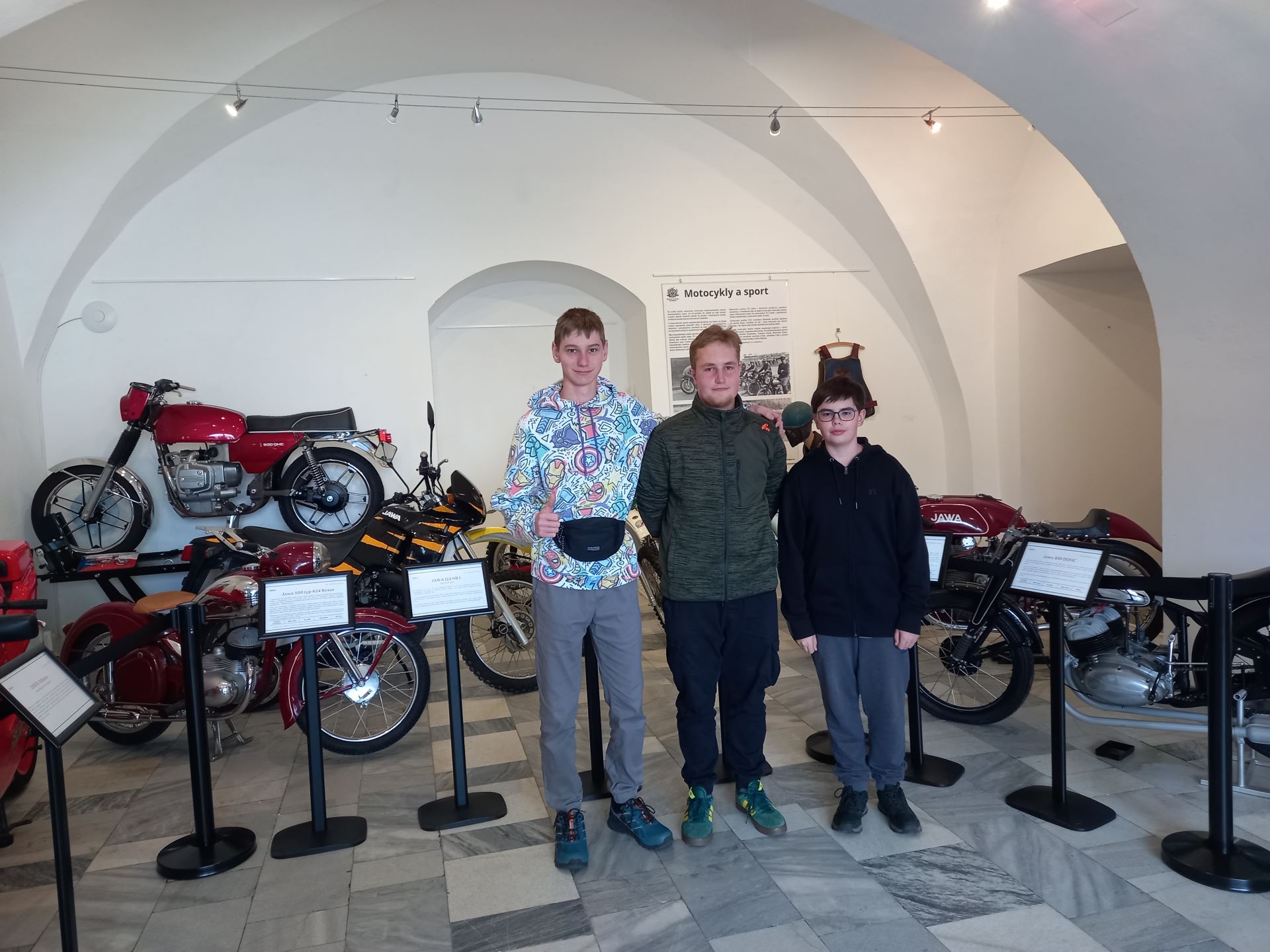 Velký zájem žáků vzbuzuje i výstava „Rychlost a tradice“, která probíhá v zámecké síni pánů z Říčan. Výstava představuje československé motocykly nejen jako dopravní prostředky, ale i jako symbol svobody, dobrodružství a sportovních úspěchů. Návštěvníci mohou obdivovat přes dvě desítky historických motorek a desítky doprovodných exponátů – přilby, oděvy, plakety i poháry.
