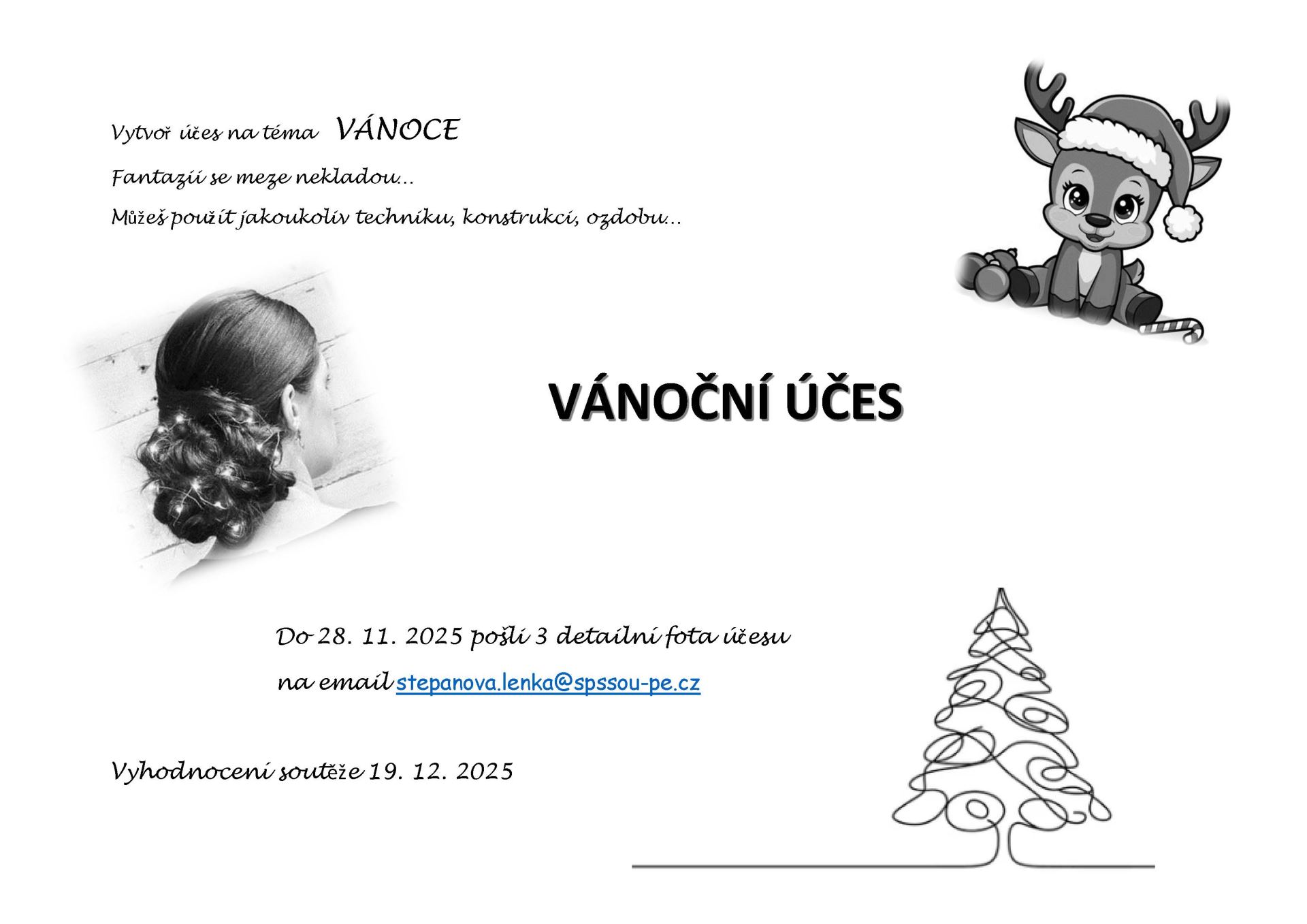 Soutěž na téma Vánoční účes 2025 02.10.2025 Žáci kadeřnického oboru se utkají ve školním kole soutěže o nejkreativnější vánoční účes.